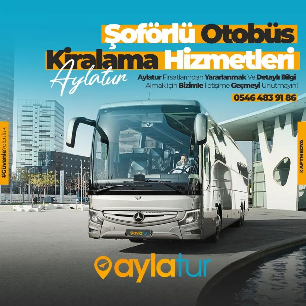 AYLATUR şoförlü otobüs kiralama hizmeti ile, grup seyahatlerinizde rahatlık ve güveni bir arada bulabilirsiniz. Profesyonel şoförlerimiz, geniş araç filomuz ve esnek kiralama seçeneklerimizle, sizin için en uygun çözümleri sunmak için buradayız.